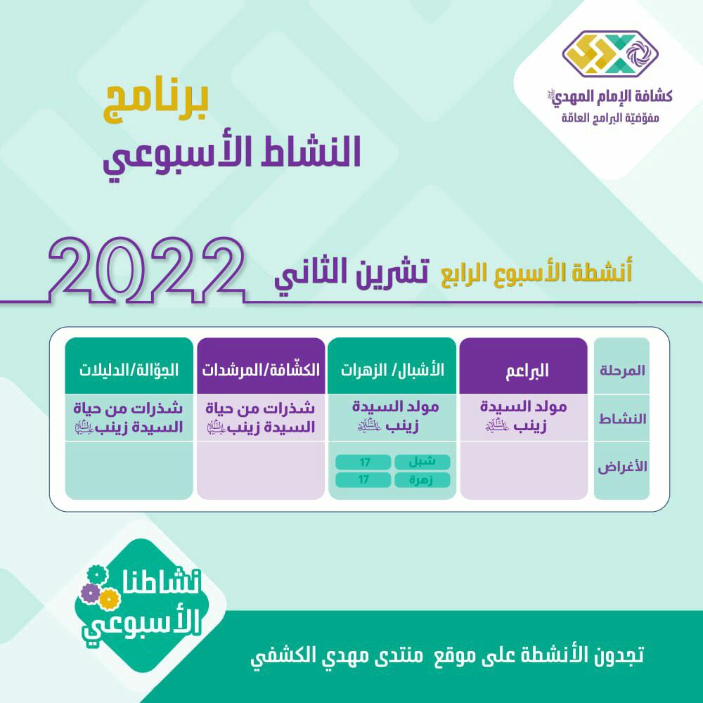 الأنشطة الأسبوعيّة - شهر تشرين الثاني 4 - 2022