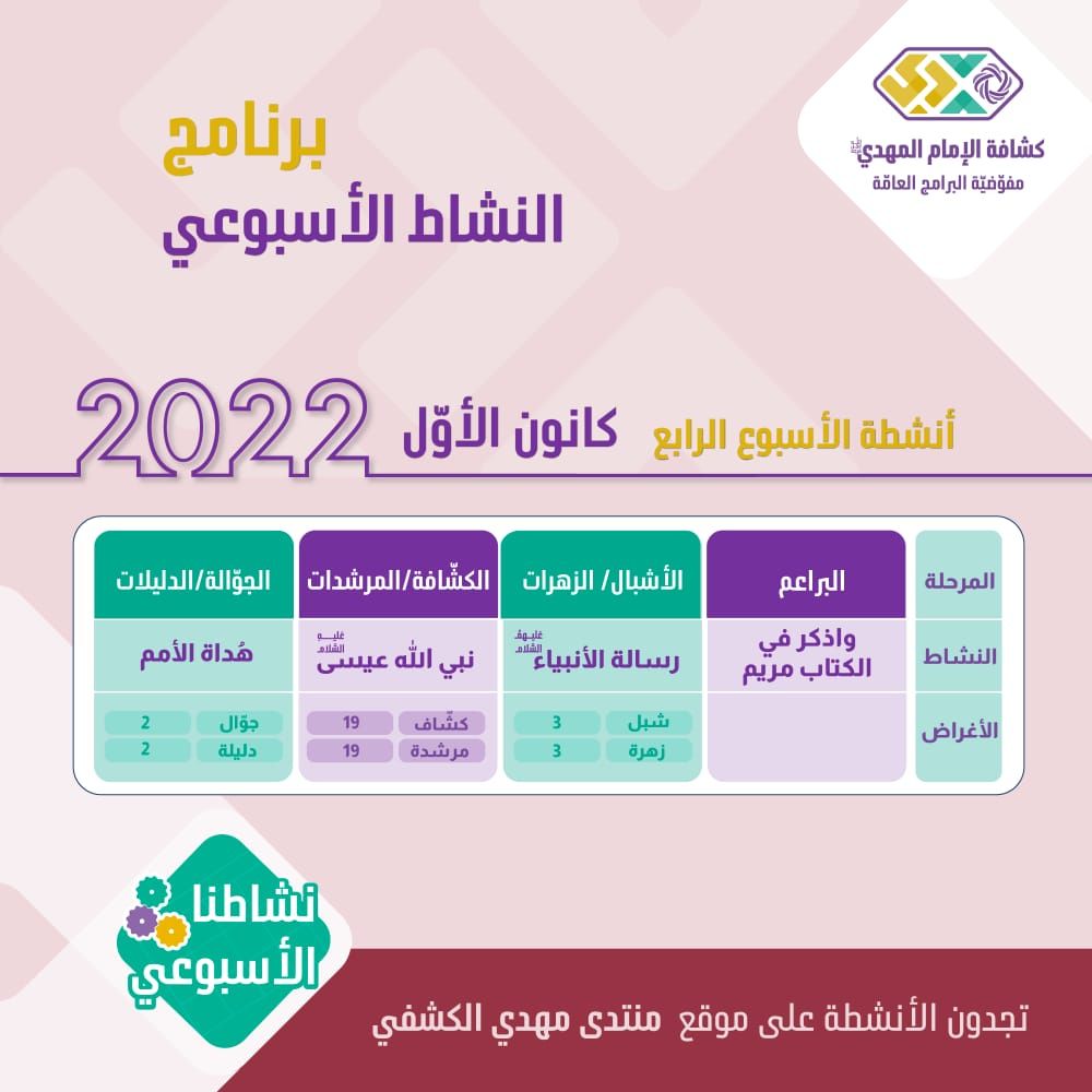 الأنشطة الأسبوعيّة - شهر كانون الأوّل 4 - 2022