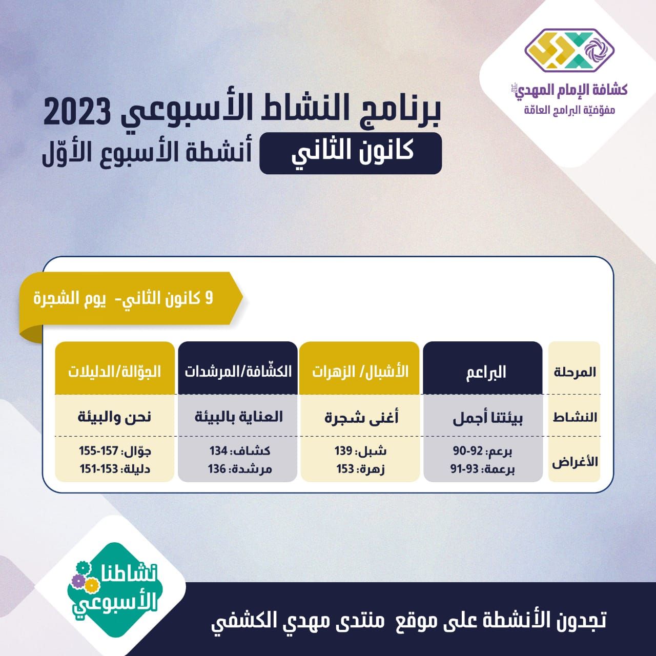 الأنشطة الأسبوعيّة - شهر كانون الثاني 1 - 2023