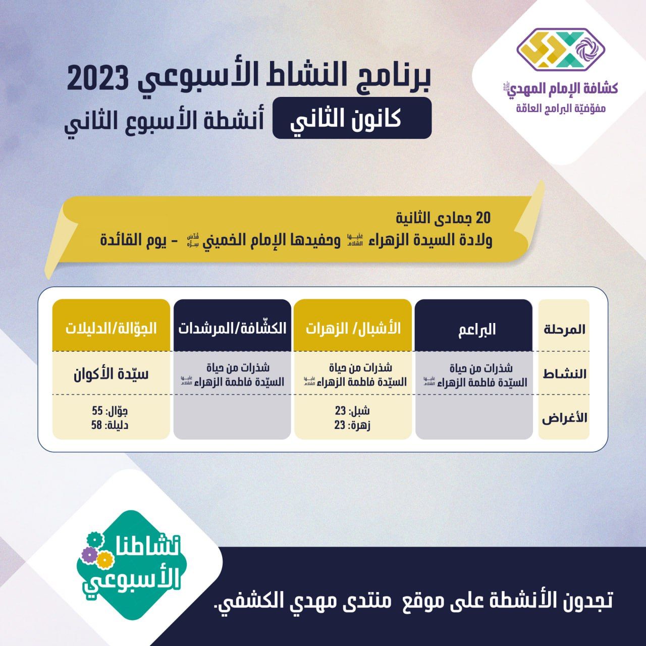 الأنشطة الأسبوعيّة - شهر كانون الثاني 2 - 2023
