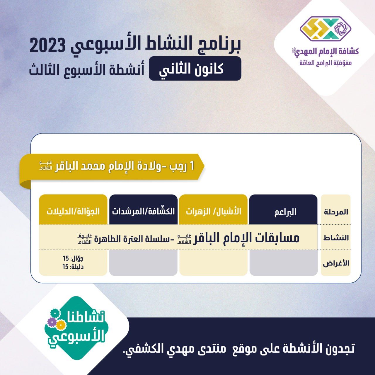 الأنشطة الأسبوعيّة - شهر كانون الثاني 3 - 2023