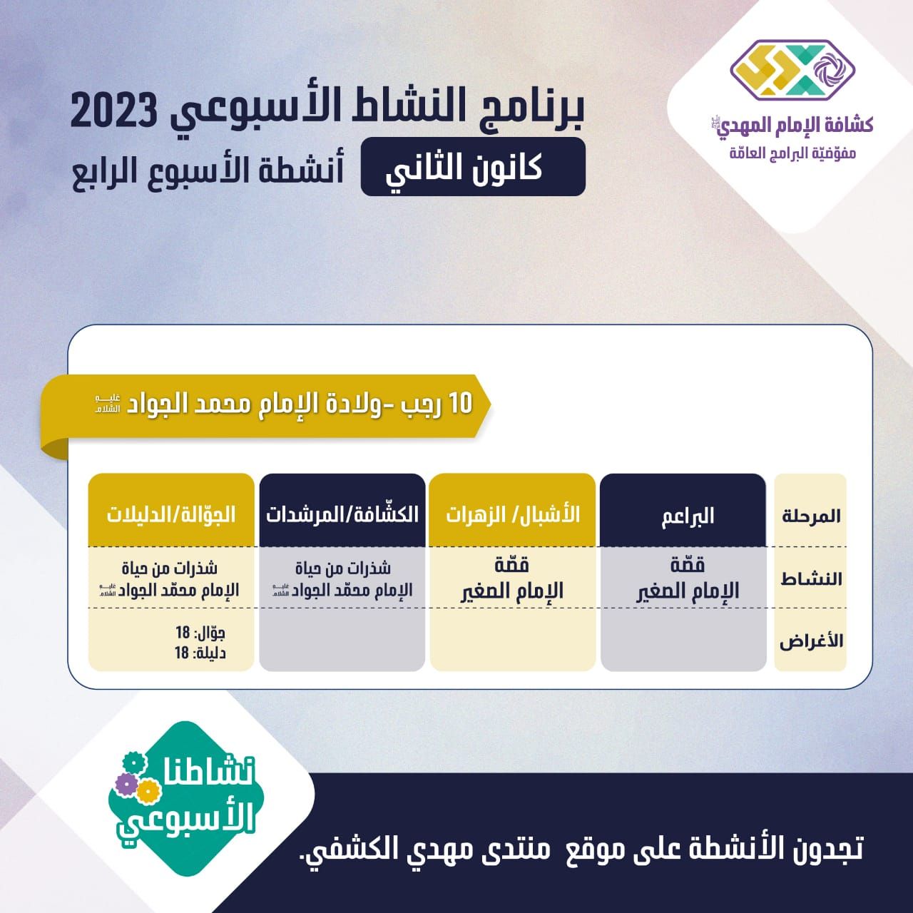 الأنشطة الأسبوعيّة - شهر كانون الثاني 4 - 2023