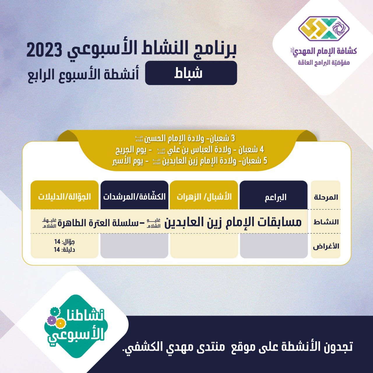 الأنشطة الأسبوعيّة - شهر شباط 4 - 2023