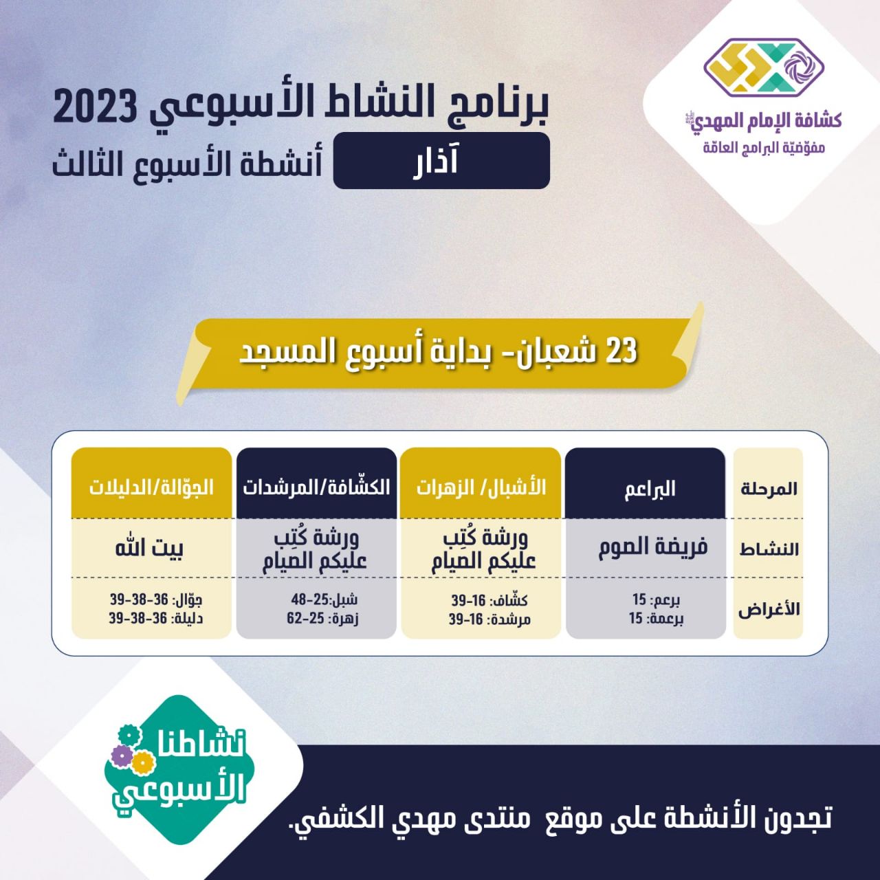 الأنشطة الأسبوعيّة - شهر آذار 3 - 2023