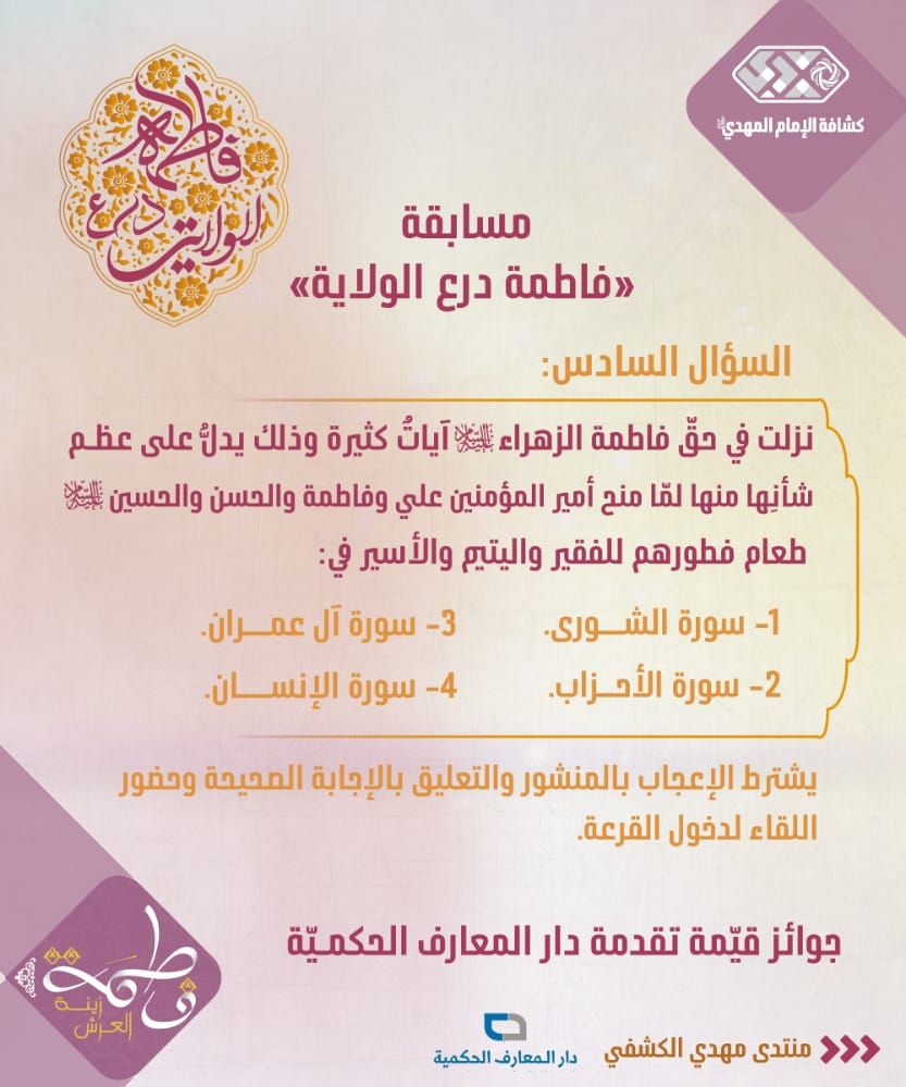 مسابقة السؤال 6 - فاطمة درع الولاية