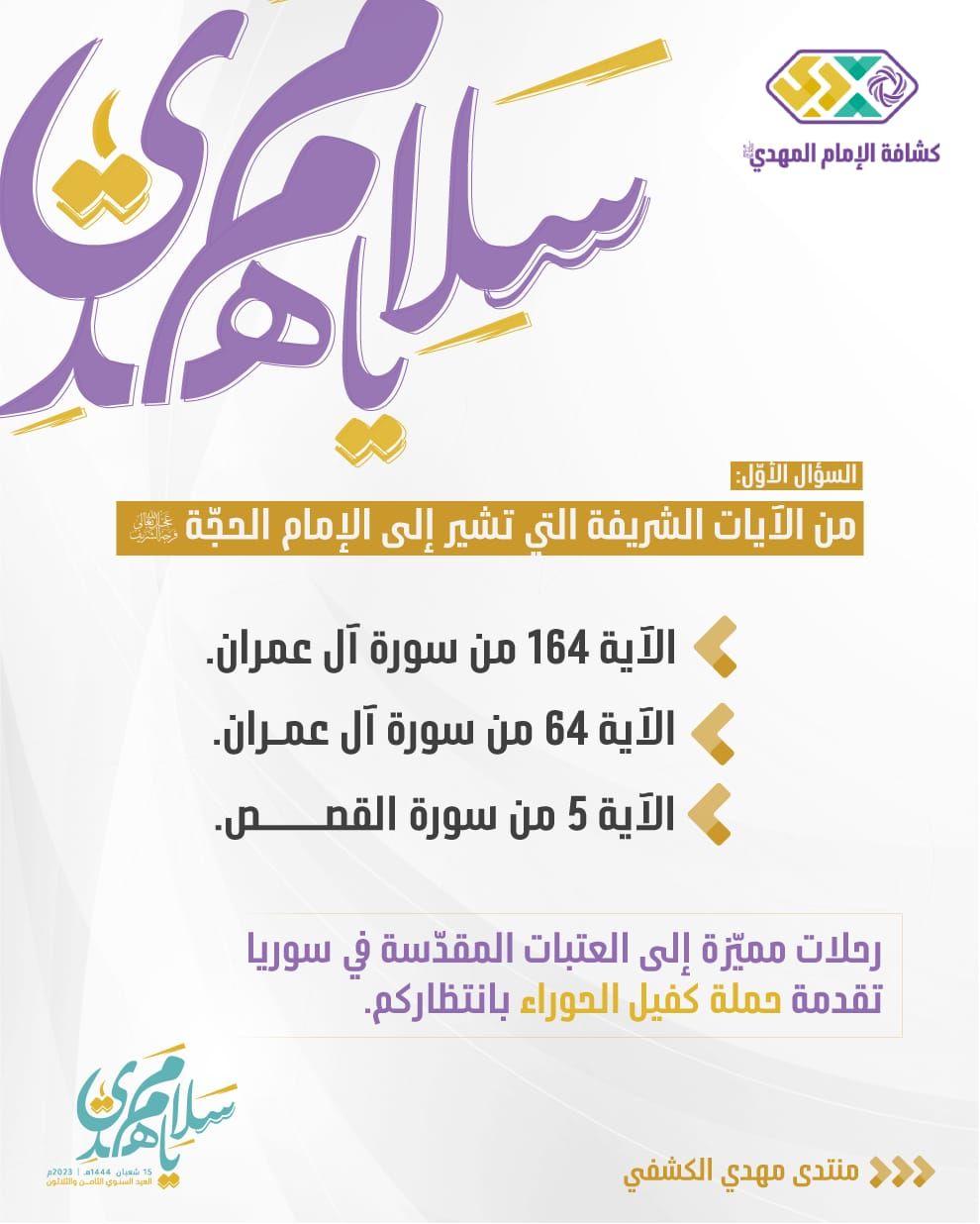 مسابقة "سلام يا مهدي" - السؤال الأوّل