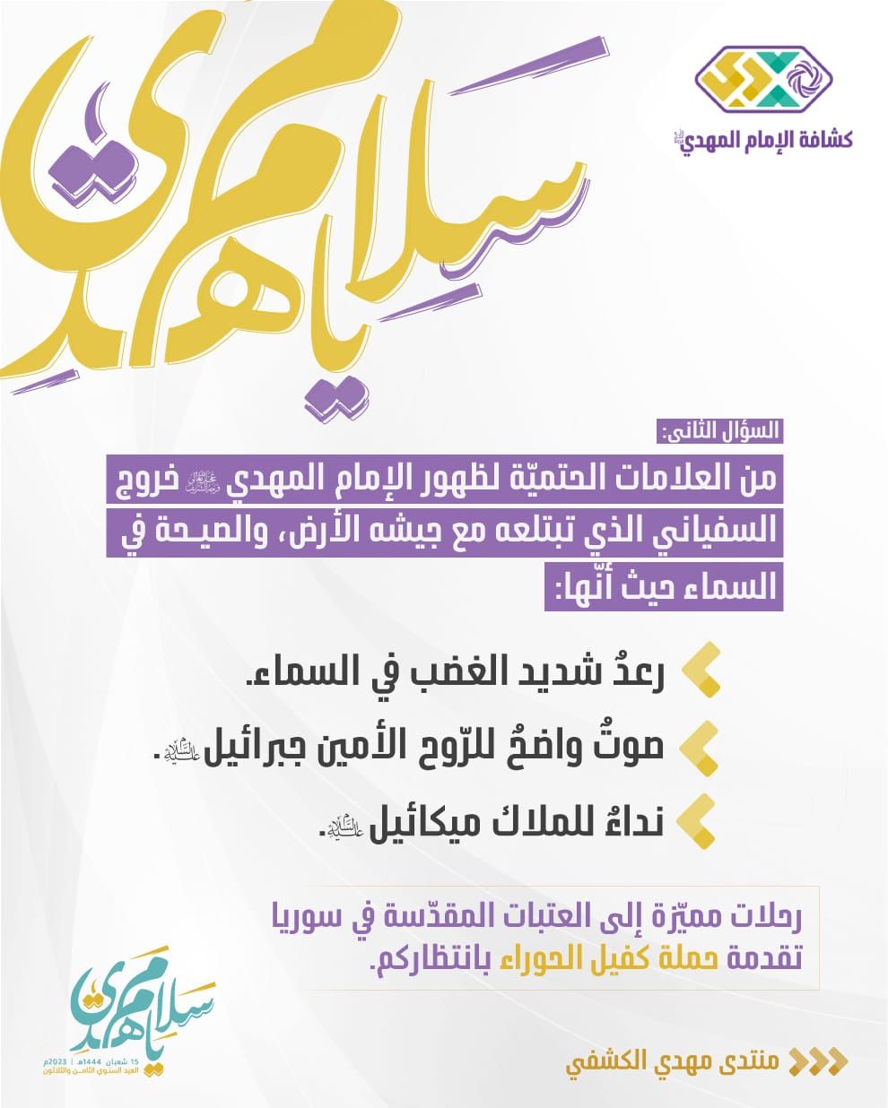 مسابقةمسابقة "سلام يا مهدي" - السؤال الثاني