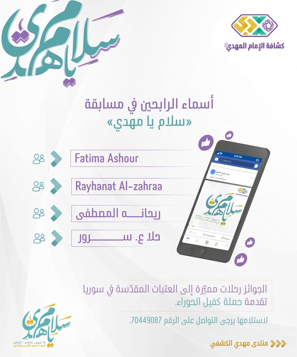 أسماء الرابحين في مسابقة "سلام يا مهدي"