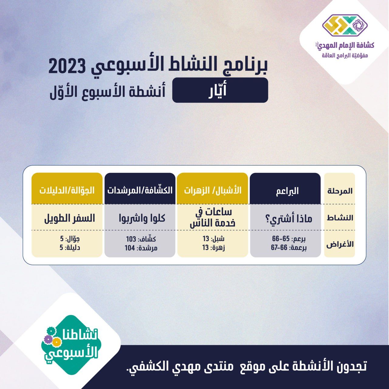 أنشطة الأسبوع 1 - أيار 2023