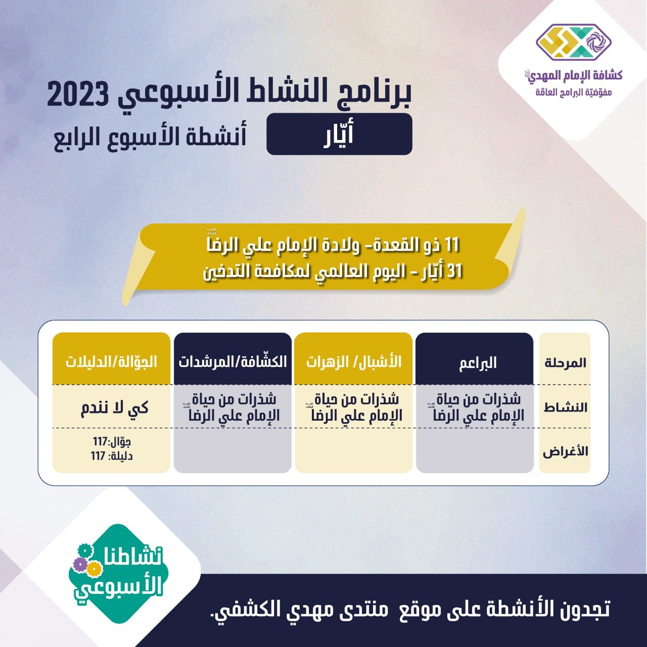 برنامج الأنشطة الأسبوعيّة - الأسبوع 4 من شهر أيّار 2023