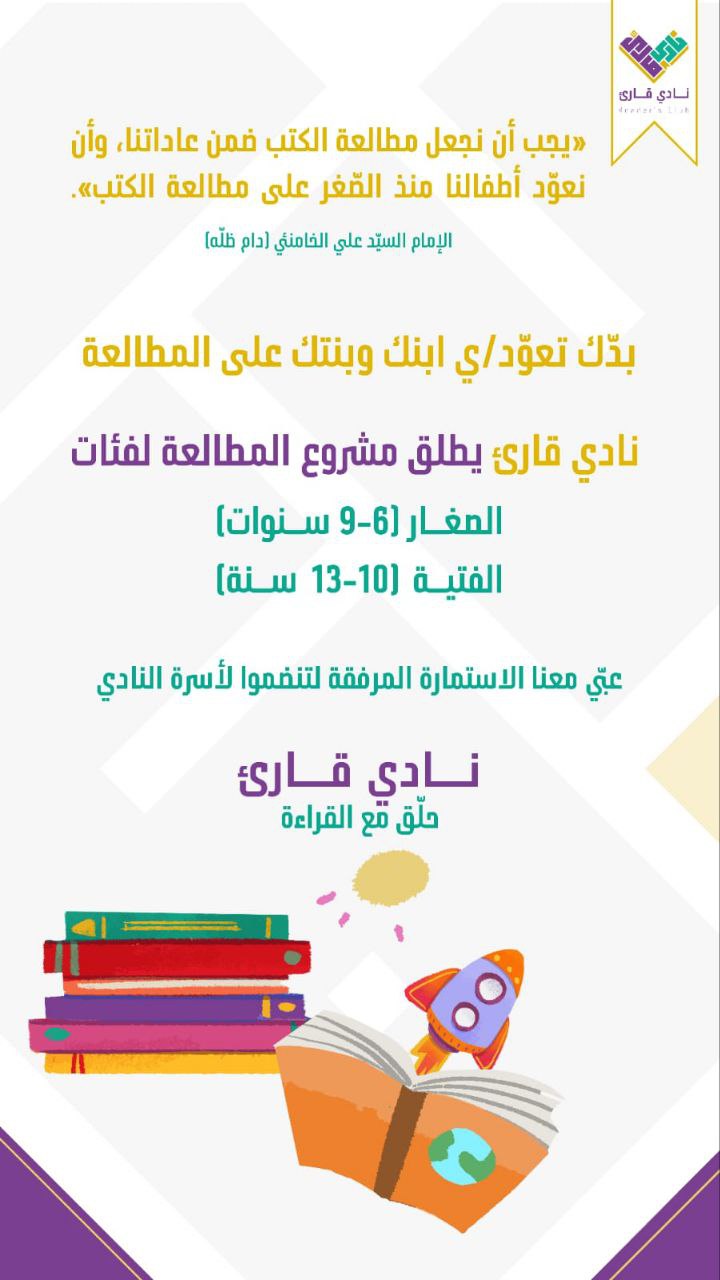 نادي قارئ يطلق مشروع المطالعة لفئات الصغار والفتية