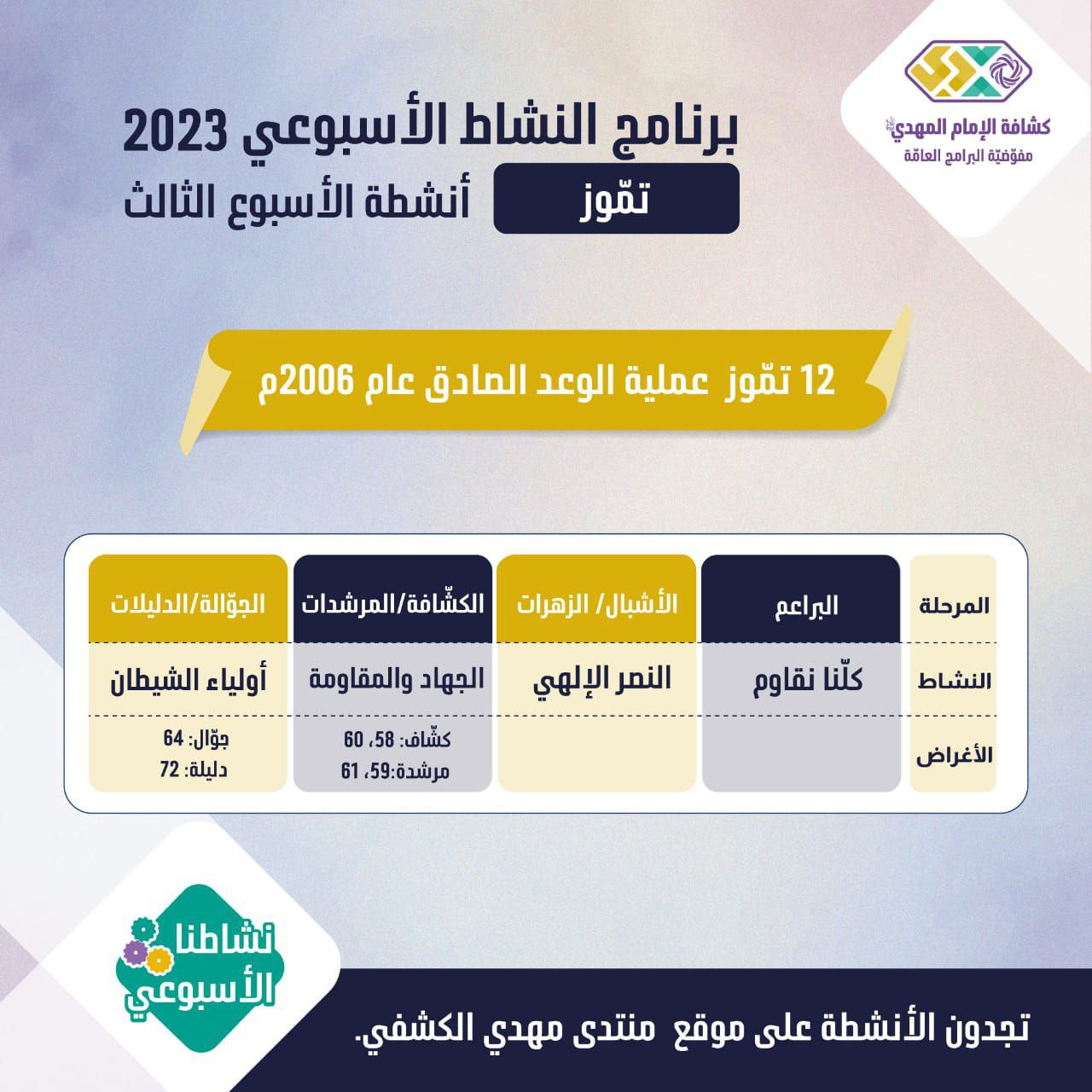 برنامج الأنشطة الأسبوعيّة - الأسبوع 3 من شهر تمّوز 2023