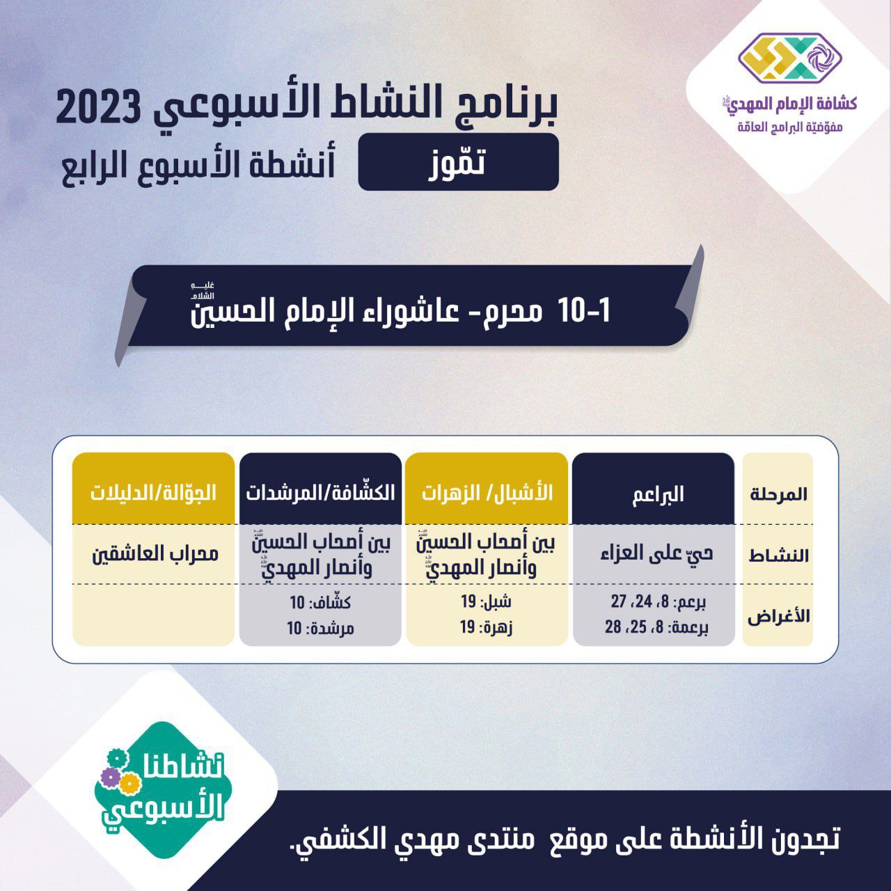 برنامج الأنشطة الأسبوعيّة - الأسبوع 4 من شهر تمّوز 2023