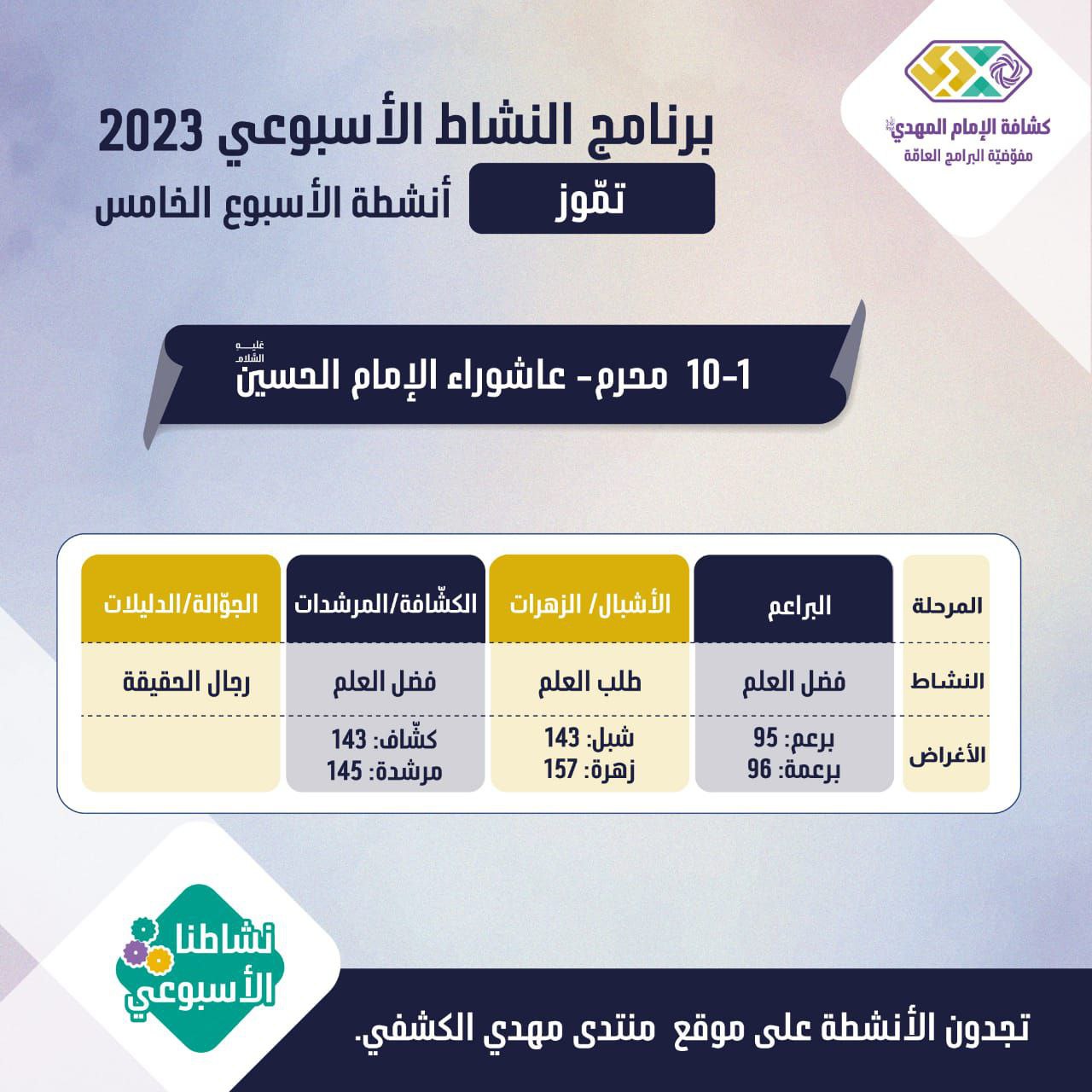 برنامج الأنشطة الأسبوعيّة - الأسبوع 5 من شهر تمّوز 2023