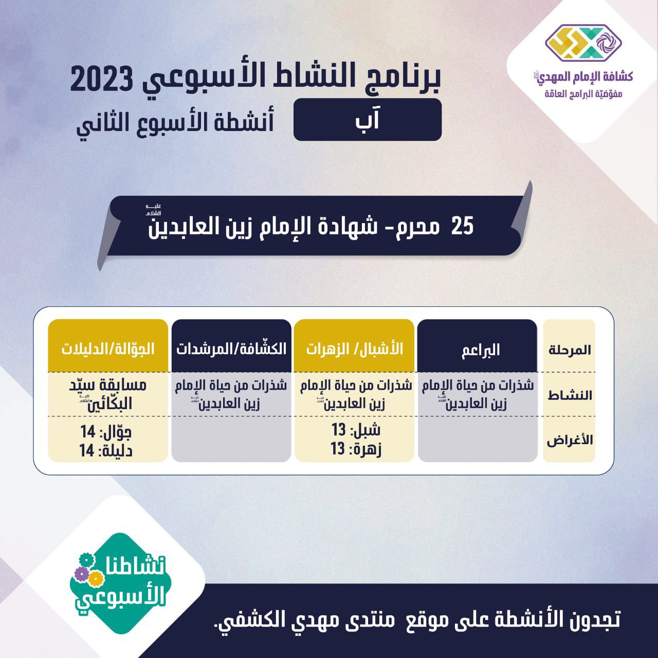 برنامج الأنشطة الأسبوعيّة - الأسبوع 2 من شهر آب 2023