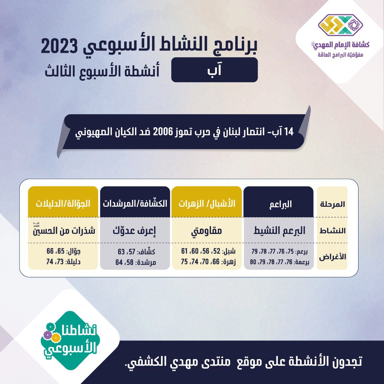 برنامج الأنشطة الأسبوعيّة - الأسبوع 3 من آب 2023