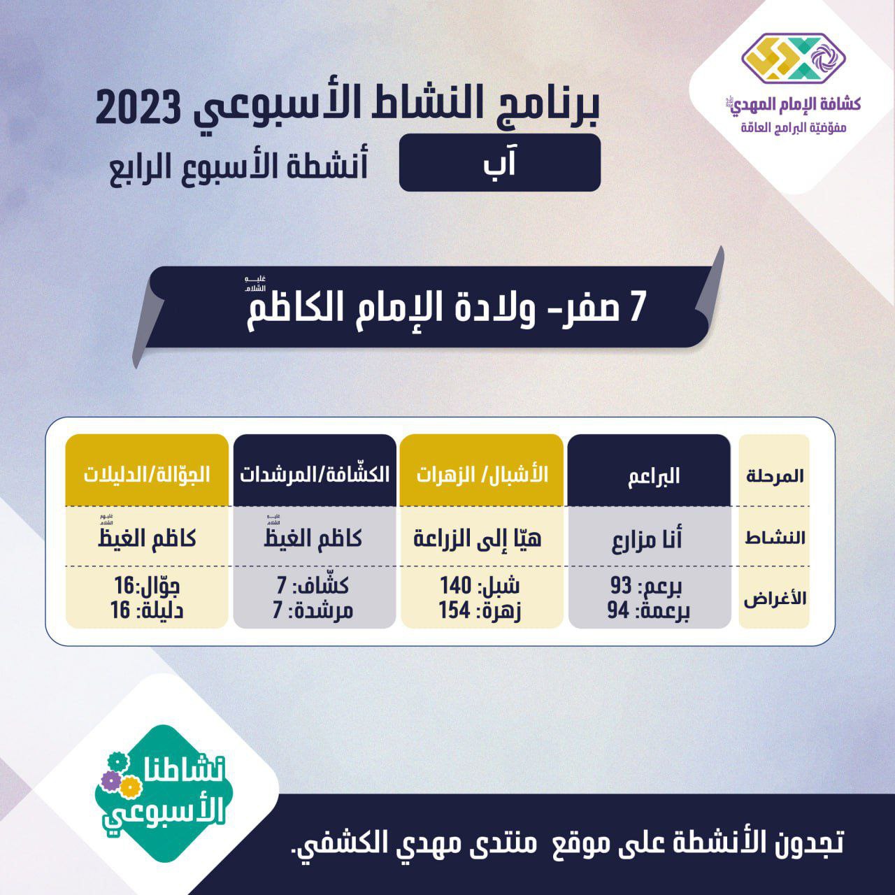 برنامج الأنشطة الأسبوعيّة - الأسبوع 4 من شهر آب 2023