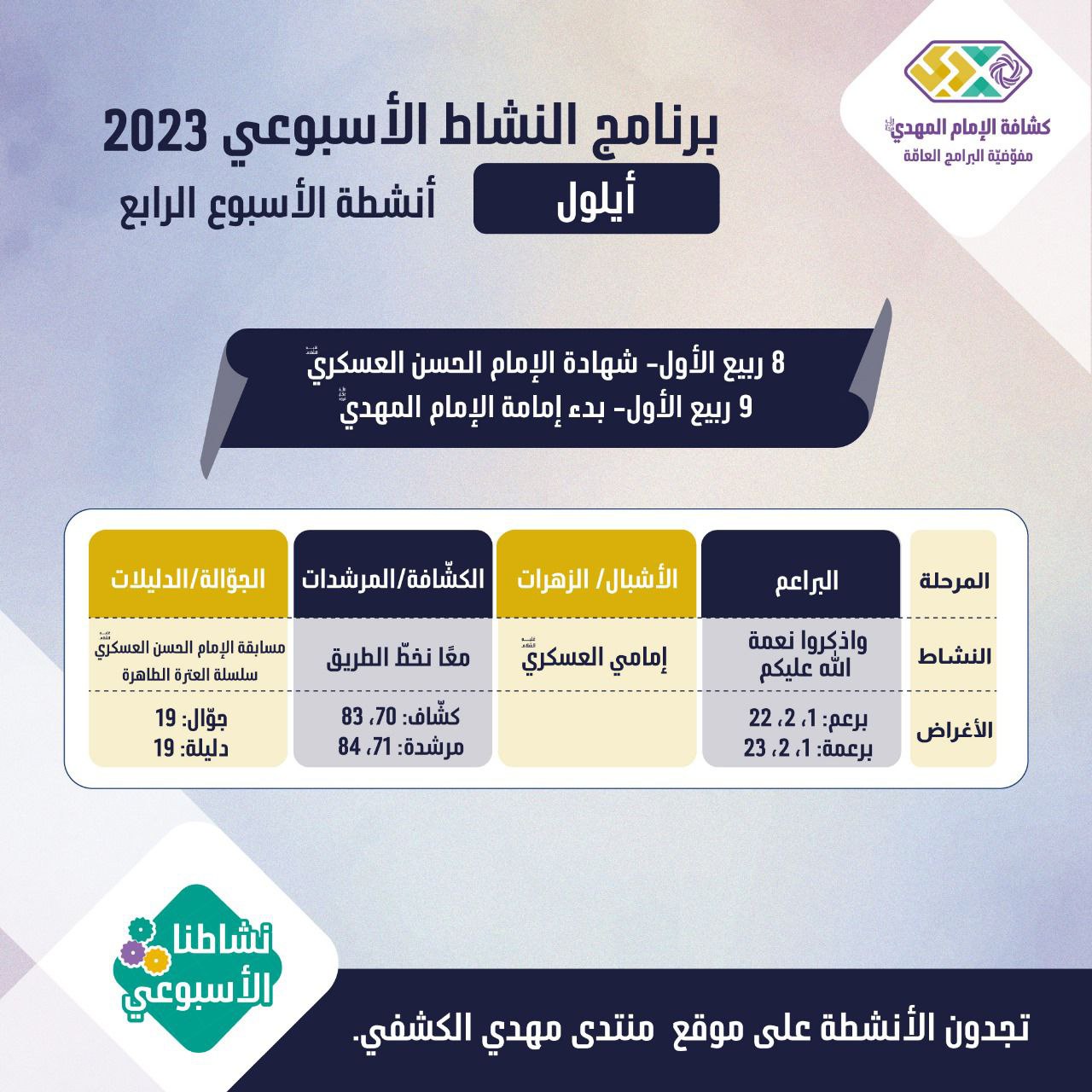 برنامج الأنشطة الأسبوعيّة - الأسبوع 4 من شهر أيلول 2023