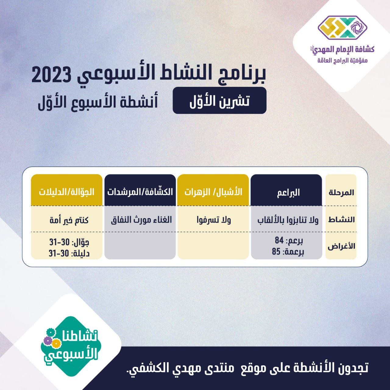 برنامج الأنشطة الأسبوعيّة - الأسبوع 1 من شهر تشرين الأوّل 2023