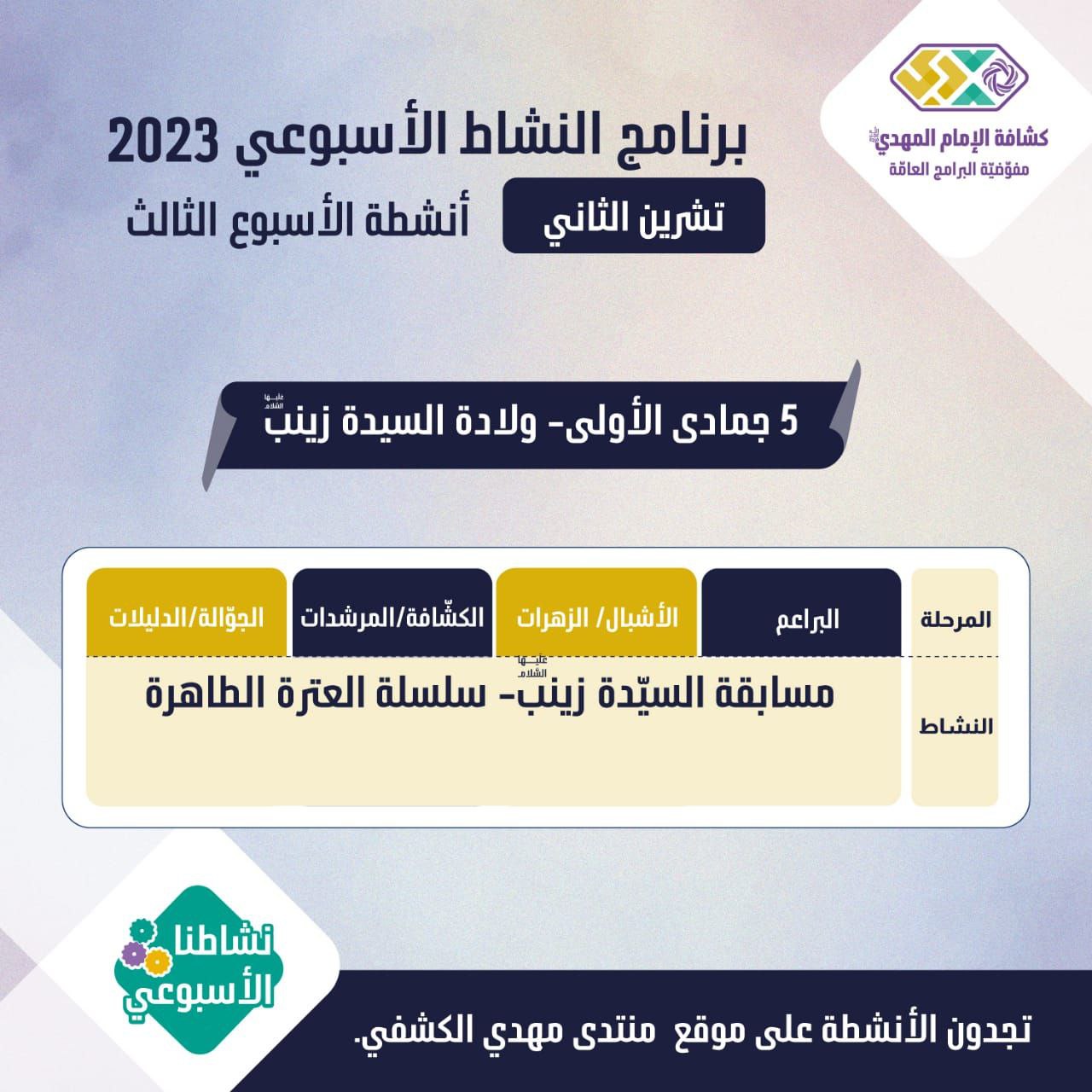 برنامج الأنشطة الأسبوعيّة - الأسبوع 3 من شهر تشرين الثاني 2023