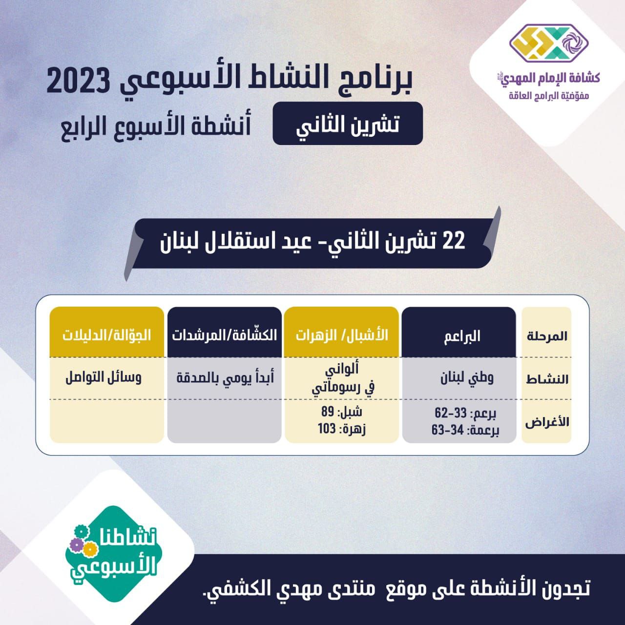 برنامج الأنشطة الأسبوعيّة - الأسبوع 4 من شهر تشرين الثاني 2023