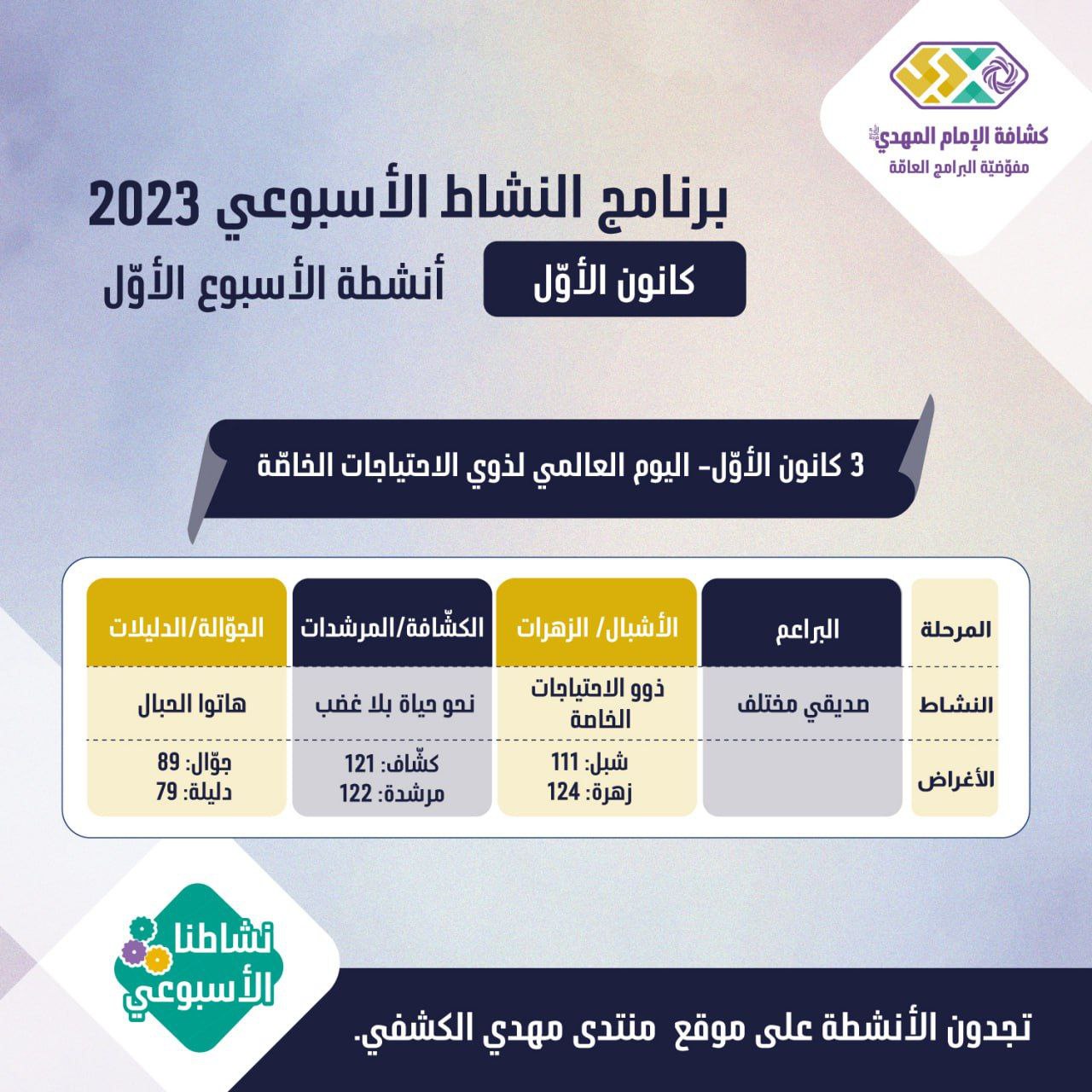 برنامج الأنشطة الأسبوعيّة - الأسبوع 1 من شهر كانون الأوّل 2023
