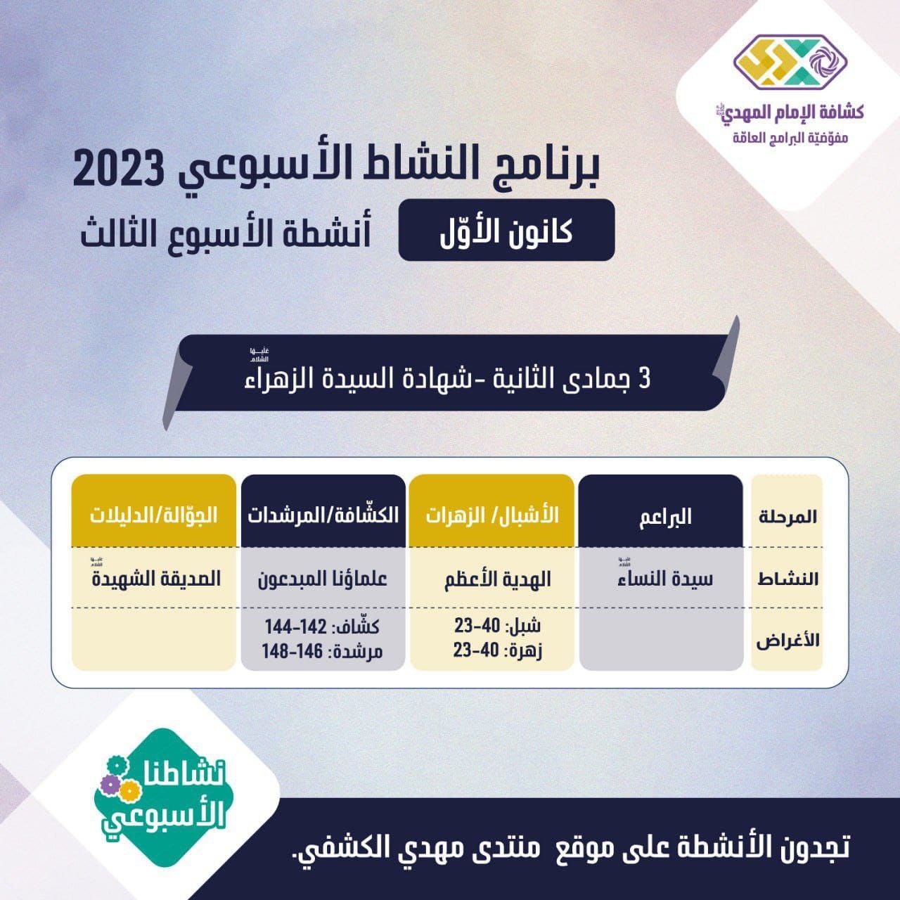 برنامج الأنشطة الأسبوعيّة - الأسبوع 3 من شهر كانون الأوّل 2023